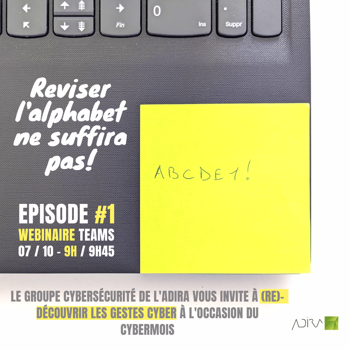 À l’occasion du Cybermois, le groupe Cybersécurité de l’ADIRA vous propose, ainsi qu’aux collaborateurs de votre entreprise de (re-)découvrir les gestes essentiels cyber.